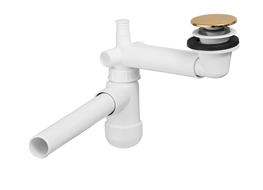 Umývadlový sifón PRELOC 400 Gold z odolného PVC predstavuje spoľahlivé a praktické riešenie pre Vašu kúpeľňu. Jeho rameno s miskou je nastaviteľné v rozsahu 185 - 270 mm, vďaka čomu sa dokonale prispôsobí Vašim potrebám. Sifón je už zmontovaný priamo vo výrobe, čo znamená, že na montáž je pripravený okamžite po vybalení. Navyše, umožňuje pohodlné napojenie aj na práčku.