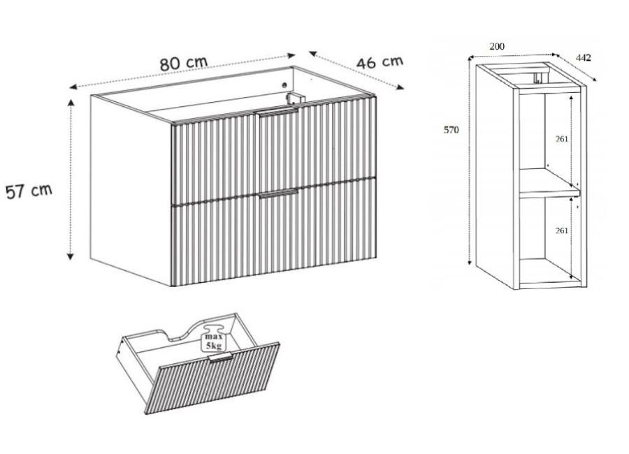 | Typ výrobku | kúpelňový nábytok, skrinky do kúpelne, závesná skrinka pod umývadlo, |