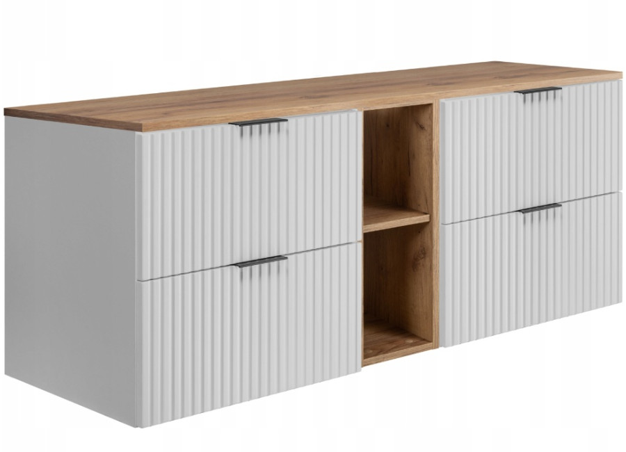 Skrinka pod umývadlo FLOW biely matný W140-60R60DC predstavuje praktické a moderné riešenie pre Vašu kúpeľňu. Skrinka v šírke 140 cm je zložená zo štyroch častí: