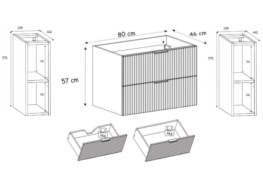 - skrinka je vyrobená z laminovanej drevotriesky a MDF materiálu odolného voči vlhkosti,