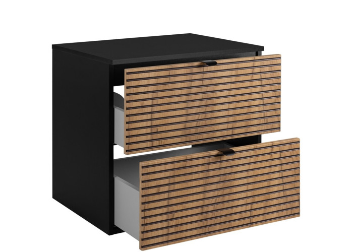 Skrinka je vybavená zásuvkami s tichým Soft Close zatváraním, čo zaručuje komfortné používanie. V balení nájdete dve úchytky v čiernej a striebornej farbe, farbu si tak môžete vybrať podľa Vášho vkusu už pri montáži. Vrchná doska je súčasťou balenia, samostatne je potrebné zakúpiť plochý sifón a vrchné umývadlo.