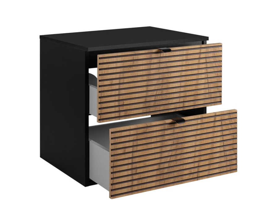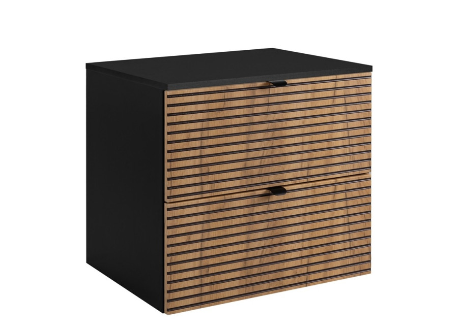 Závesná skrinka pod umývadlo LOFT C60DB so šírkou 60 cm je ideálnym riešením pre všetkých, ktorí hľadajú moderný kúpeľňový nábytok s luxusným vzhľadom. Dekor dub craft zlatý v kombinácii s čiernymi prvkami dodáva skrinke elegantný glamour štýl. Je vyrobená z kvalitnej laminovanej drevotriesky s hrúbkou 16 mm, pričom čielka zásuviek sú z MDF materiálu. Tento dizajn je ďalej zvýraznený vodorovnými drážkami na zásuvkách.