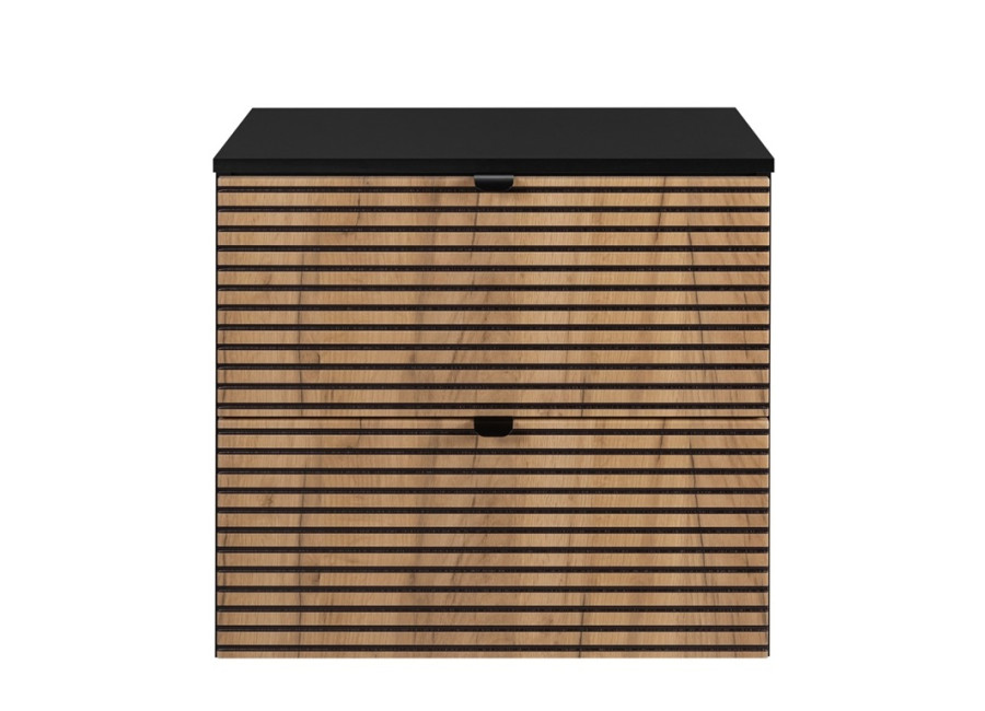 Skrinka je vybavená zásuvkami s tichým Soft Close zatváraním, čo zaručuje komfortné používanie. V balení nájdete dve úchytky v čiernej a striebornej farbe, farbu si tak môžete vybrať podľa Vášho vkusu už pri montáži. Vrchná doska je súčasťou balenia, samostatne je potrebné zakúpiť plochý sifón a vrchné umývadlo.