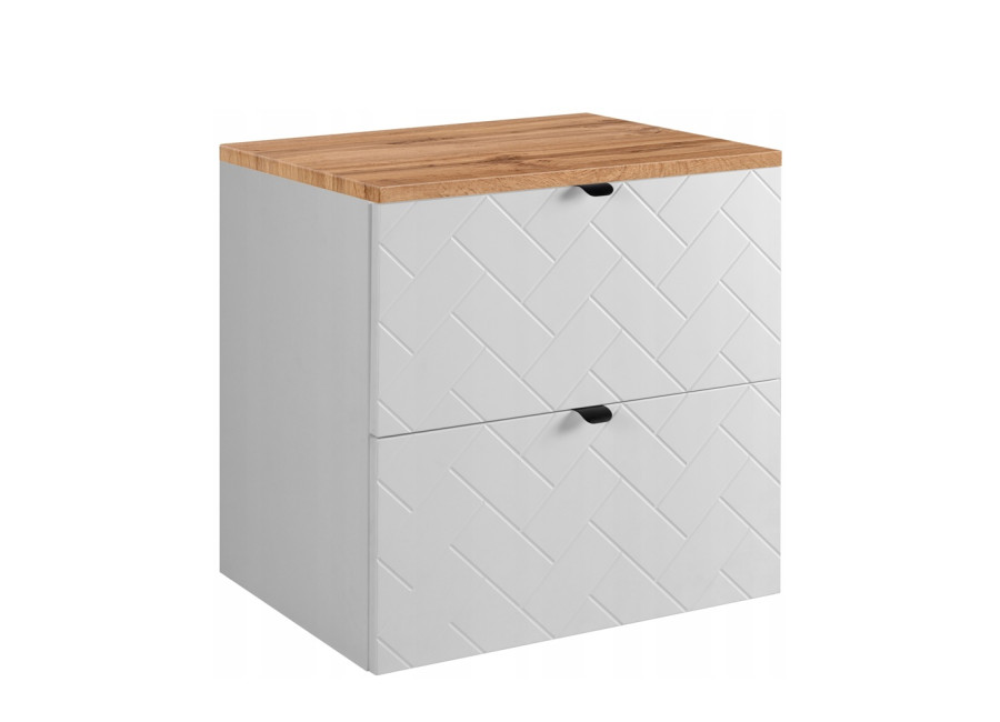 Kúpeľňová skrinka je navrhnutá na zavesenie na stenu, čím umožňuje jednoduché čistenie podlahy pod skrinkou. V balení nájdete tri sady úchytiek v čiernej, striebornej a zlatej farbe, takže si môžete vybrať tú, ktorá najlepšie ladí s ostatnými prvkami Vašej kúpeľne. Skrinka zaujme moderne drážkovanými čielkami zásuviek, ktoré dodávajú celkovému dizajnu zaujímavý prvok.