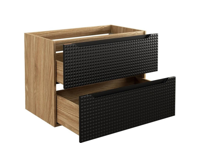 Závesná skrinka pod umývadlo v šírke 80 cm LUXOR BLACK je ideálnym riešením pre každú kúpeľňu, ktorá potrebuje úložný priestor. Korpus skrinky je vyrobený z laminovanej drevotriesky vo farbe dub olejovaný. Tento prírodný odtieň dubu prináša do Vašej kúpeľne teplý a príjemný vzhľad, ktorý sa skvele kombinuje s modernými prvkami. Skrinka je vybavená dvierkami z MDF materiálu v čiernej matnej farbe, ktoré dodávajú celému dizajnu nadčasový vzhľad. Kúpeľňová zostava 82-80-2S-DU sa skladá z troch častí: