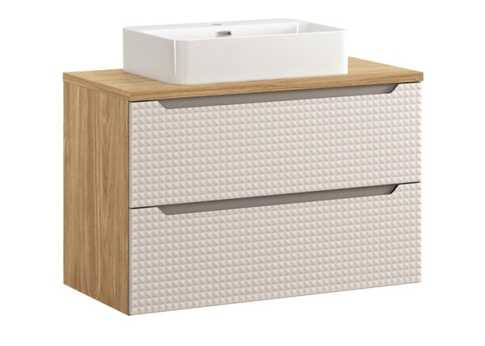 Praktická závesná skrinka pod umývadlo LUXOR Beige je ideálnym riešením pre moderné kúpeľne, ponúkajúc efektívne využitie priestoru. Korpus je vyrobený z laminovanej drevotriesky vo farbe dub olejovaný, čo dodáva produktu prírodný vzhľad. Dvierka z MDF materiálu v béžovej matnej farbe prispievajú k luxusnému dojmu každého interiéru. Skrinka je navrhnutá so zameraním na funkčnosť a obsahuje dve priestranné zásuvky s mechanizmom tichého uzatvárania. Tento detail zabezpečuje pohodlnú a tichú manipuláciu. Pre ešte vyššiu eleganciu a bezproblémovú manipuláciu sú zásuvky vybavené integrovanými úchytkami, ktoré nenarúšajú hladký dizajn prednej časti skrinky. Kúpeľňový set 82-90-2S-DU sa skladá z troch častí: