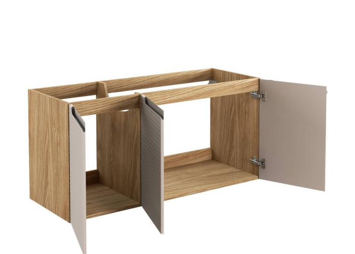 Predstavujeme Vám závesnú skrinku pod umývadlo LUXOR Beige, ktorá prinesie eleganciu do Vašej kúpeľne. Táto kúpeľňová skrinka sa pýši moderným dizajnom, ktorý dokonale ladí s akýmkoľvek interiérom. Korpus je vyrobený z laminovanej drevotriesky vo farbe dub olejovaný, čo zaručuje odolnosť a dlhú životnosť produktu. Dvierka z MDF materiálu v béžovej matnej farbe dodávajú nádych luxusu. Závesná skrinka pod umývadlo LUXOR Beige sa môže pochváliť dvierkami s tichým uzatváraním, čím zvyšuje pohodlie pri každodennom používaní. Troje dvierka zaručujú dostatok priestoru pre Vaše kúpeľňové potreby, takže budete mať všetko vždy po ruke a zároveň pekne usporiadané.