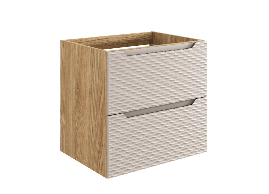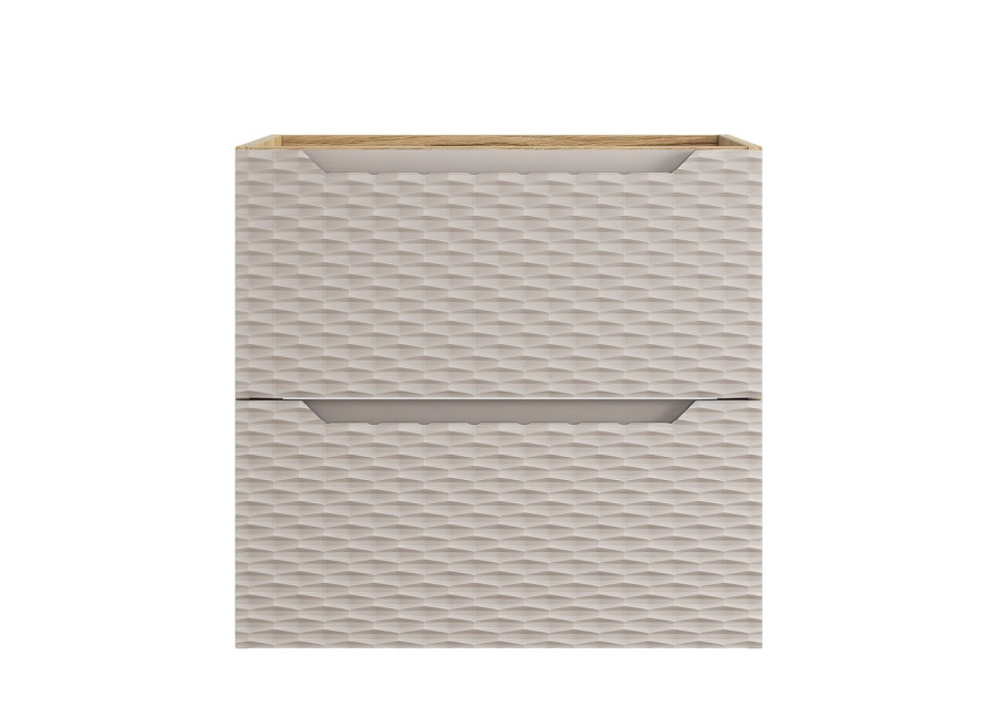 Skrinka pod umývadlo OCEAN Beige 82-60-2S je spoľahlivým riešením pre každú modernú kúpeľňu. Tento typ kúpeľňového nábytku ponúka praktické využitie úložného priestoru a zároveň zapadá do aktuálnych trendov v interiérovom dizajne. Skrinka pod umývadlo v šírke 60 cm je vyrobená z laminovanej drevotriesky doplnenej odolnými ABS hranami. Čielka zásuviek sú z MDF materiálu a ich povrch zdobia trojrozmerné horizontálne línie, ktoré svojím vzhľadom pripomínajú pohyb oceánskej hladiny. Tento detail jej dodáva jedinečný vizuálny efekt, ktorý oživí akýkoľvek kúpeľňový priestor.