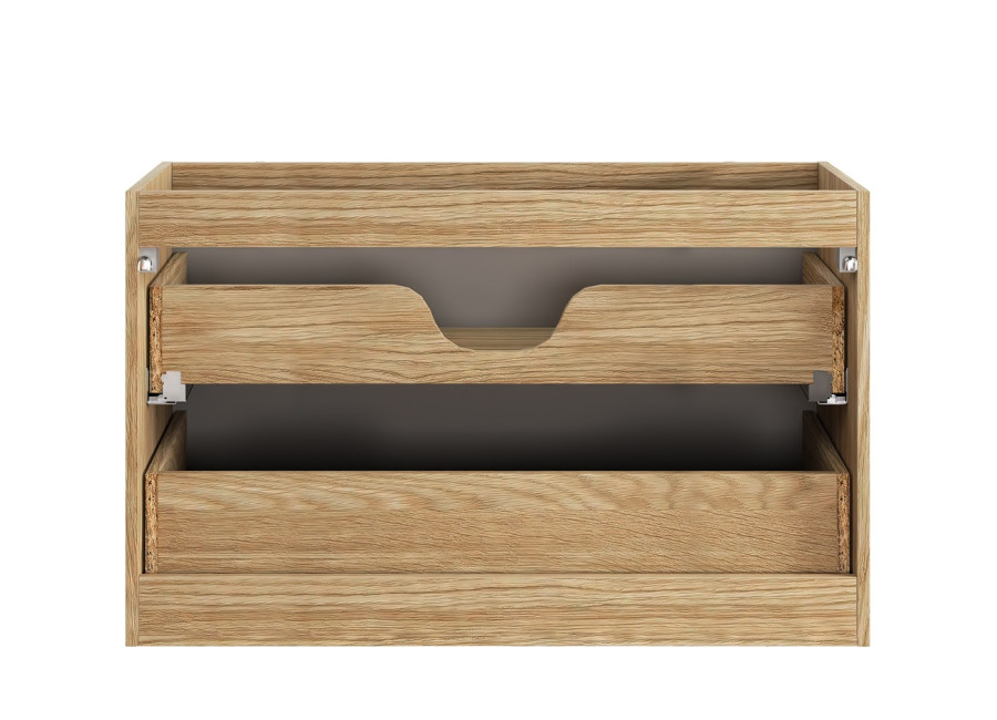 Skrinka je určená na zavesenie na stenu, čo z nej robí praktické a moderné riešenie pre optimalizáciu priestoru vo Vašej kúpeľni. Jej dve zásuvky sú vybavené funkciou tichého zatvárania, vďaka ktorej je každodenné používanie pohodlné. Integrované úchytky zvyšujú vizuálnu čistotu dizajnu a farebné prevedenie v béžovej matnej a dub olejovaný dodáva kúpeľni teplý a prirodzený vzhľad.