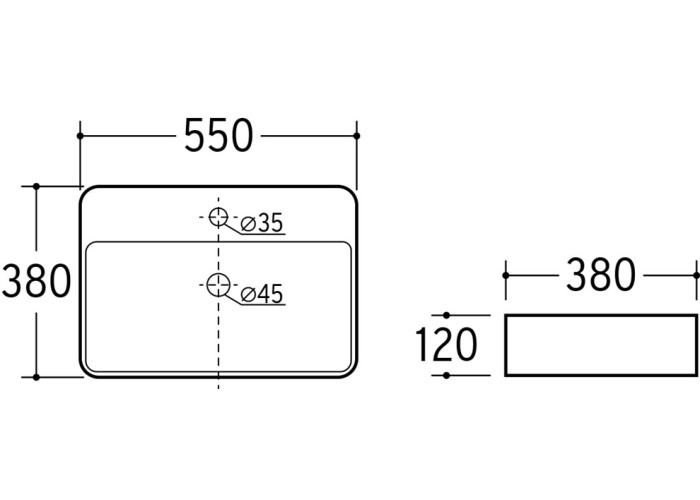 - vrchného umývadla (rozmer 55x38 cm, výška 12 cm).