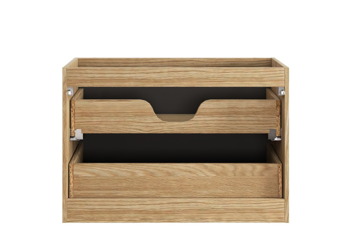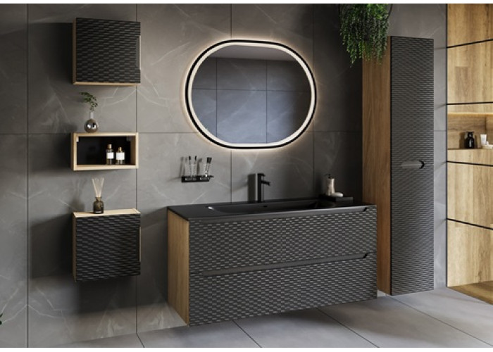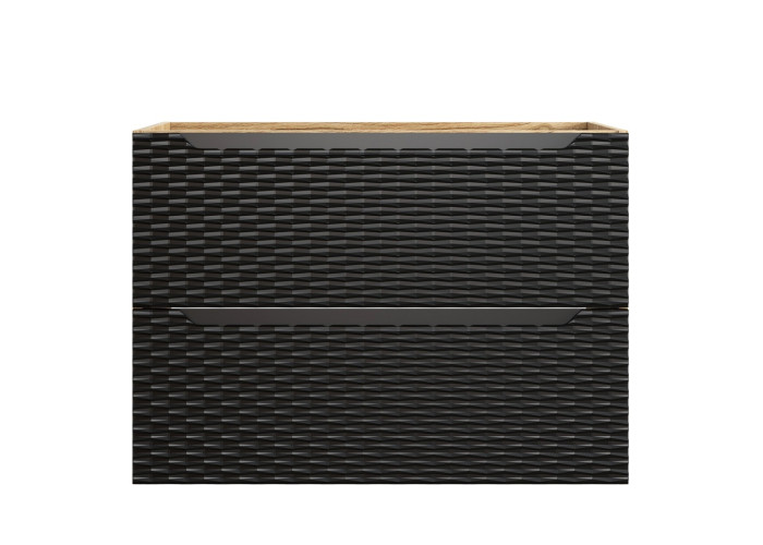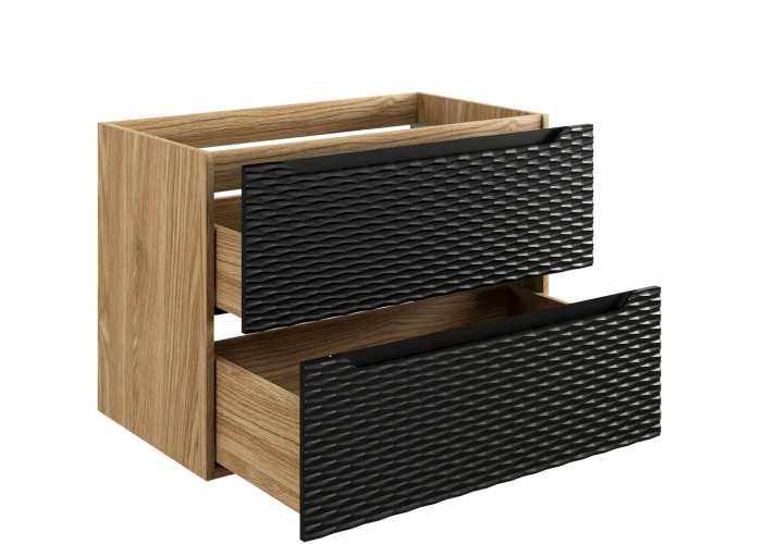 Skrinka je dostupná vo farebnom prevedení čierna matná a dub olejovaný, umožňuje Vám zladiť ju s rôznymi štýlmi interiéru. Je určená na zavesenie na stenu, čo uľahčuje údržbu podlahy a vytvára dojem vzdušnosti priestoru. Skrinka do kúpeľne je vybavená dvoma zásuvkami s funkciou tichého zatvárania, ktoré poskytujú dostatok priestoru pre všetky kúpeľňové potreby.