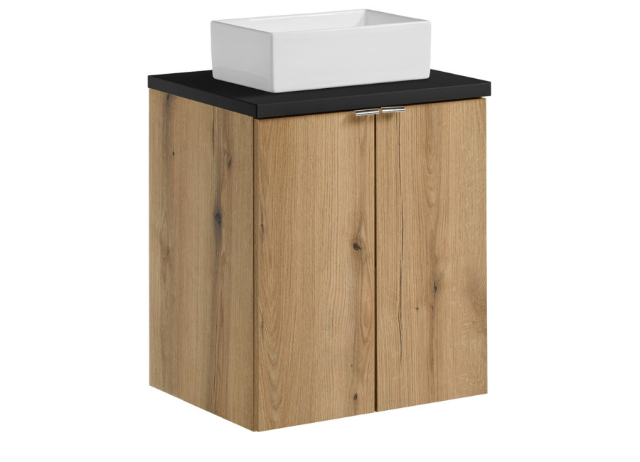 Skrinka pod umývadlo s čiernou vrchnou doskou NOVA dub 82-60-2S-DC je praktickým riešením pre modernú kúpeľňu...