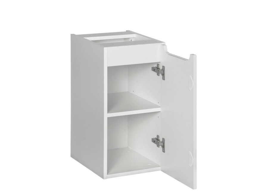 Závesná skrinka do kúpeľne NOVA WHITE 81-30-1D je praktickým a moderným kúskom, ktorý dokonale zapadne do každého kúpeľňového interiéru. Úzka skrinka do kúpeľne v šírke 30 cm je navrhnutá primárne ako spojovacia alebo rozširujúca skrinka k umývadlovým skrinkám z rovnakej kolekcie. Umožňuje efektívne vyplniť priestor a rozšíriť úložné možnosti vedľa umývadla, prípadne poslúži ako samostatný úložný prvok v menších priestoroch.
