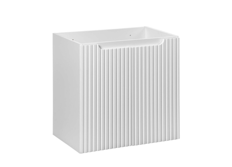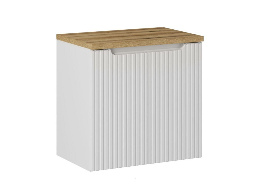 Skrinka pod umývadlo NOVA WHITE 82-60-2D-DD je praktický kúpeľňový nábytok, ktorý spĺňa nároky na moderné skrinky do kúpeľne. Ide o skrinku pod umývadlo v šírke 60 cm, vyrobenú z laminovanej drevotriesky s ABS hranami, pričom dvierka sú z MDF materiálu. Predné plochy sú zdobené zvislými pásikmi a dopĺňajú ich integrované úchytky, ktoré prispievajú k jednoduchému a čistému vzhľadu. Farebné prevedenie biela matná + dub evoke sa ľahko kombinuje s ostatným nábytkom do kúpeľne a vďaka odolnosti voči vlhkosti patrí medzi kvalitné skrinky vhodné do rôznych kúpeľňových priestorov.