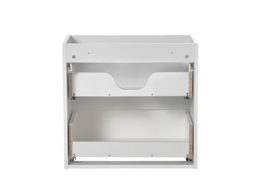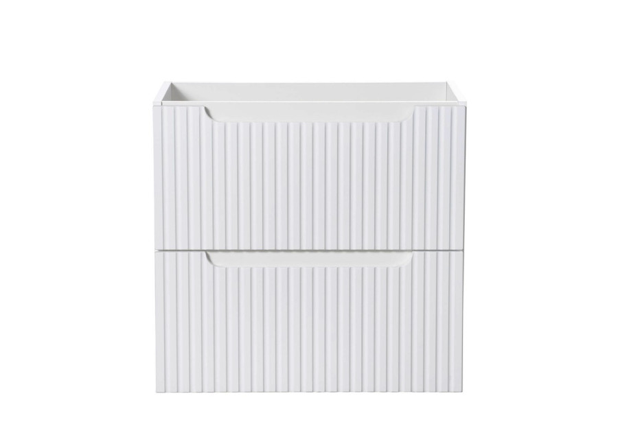 Predné plochy skrinky sú zdobené jemnými zvislými pásikmi. Integrované úchytky dopĺňajú dizajn a zabezpečujú pohodlné používanie. Skrinka je navrhnutá na zavesenie na stenu, vďaka čomu umožňuje jednoduché čistenie podlahového priestoru. Zásuvková skrinka pod umývadlo ponúka dve zásuvky vybavené funkciou tichého dovierania. Na maximálne využitie úložného priestoru vrchnej zásuvky odporúčame zakúpenie plochého sifónu. Vrchné umývadlo nie je súčasťou balenia.