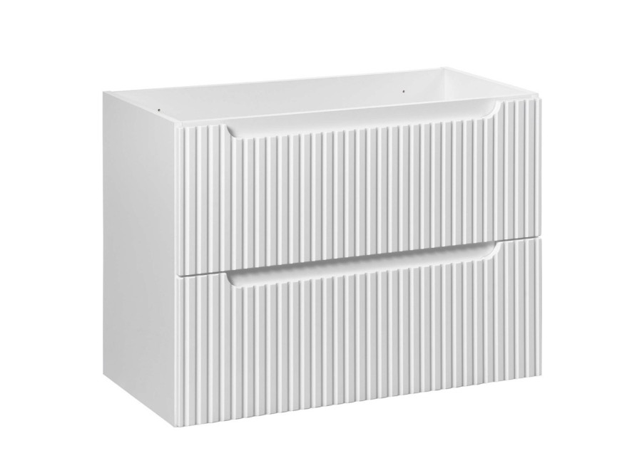 Predstavujeme Vám skrinku pod umývadlo NOVA WHITE 82-80-2S, ktorá je súčasťou modernej kolekcie kúpeľňového nábytku navrhnutého s dôrazom na funkčnosť a moderný dizajn. Ide o praktickú zásuvkovú skrinku pod umývadlo v šírke 80 cm, ktorá poskytuje štedrý úložný priestor. Korpus skrinky je vyrobený z laminovanej drevotriesky s ABS hranami, čielka zásuviek sú z frézovaného MDF materiálu. Charakteristickým prvkom dizajnu sú predné plochy, ktoré sú elegantne zdobené jemnými zvislými pásikmi. Minimalistický vzhľad dotvárajú integrované úchytky.