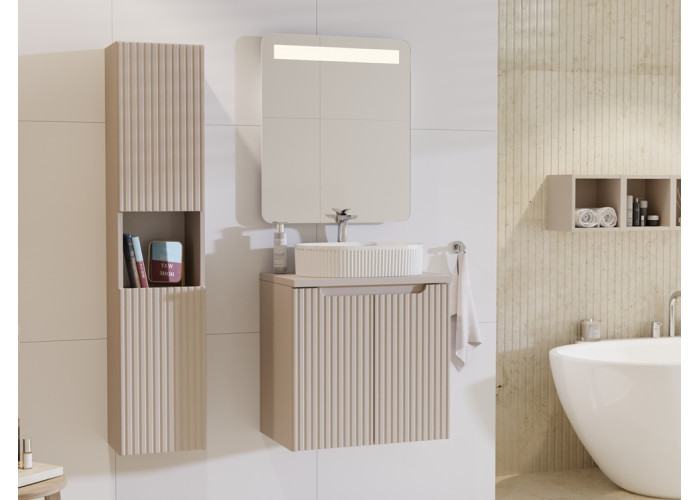 Skriňa do kúpeľne NOVA Cashmere 80-60-39 zaujme na prvý pohľad jemným vertikálnym drážkovaním, ktoré do..