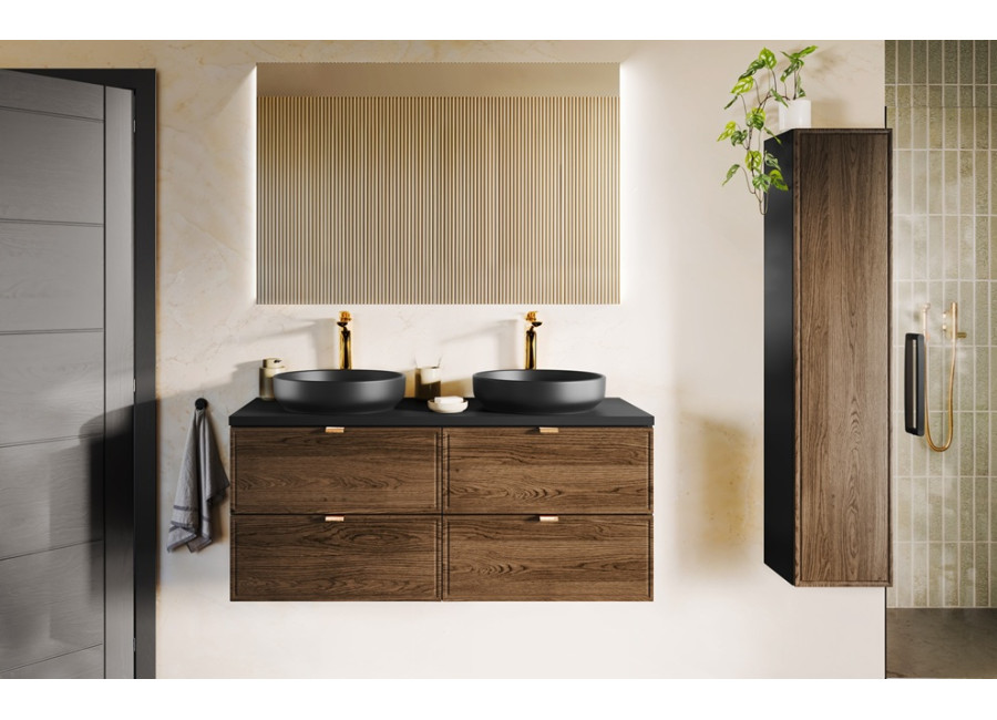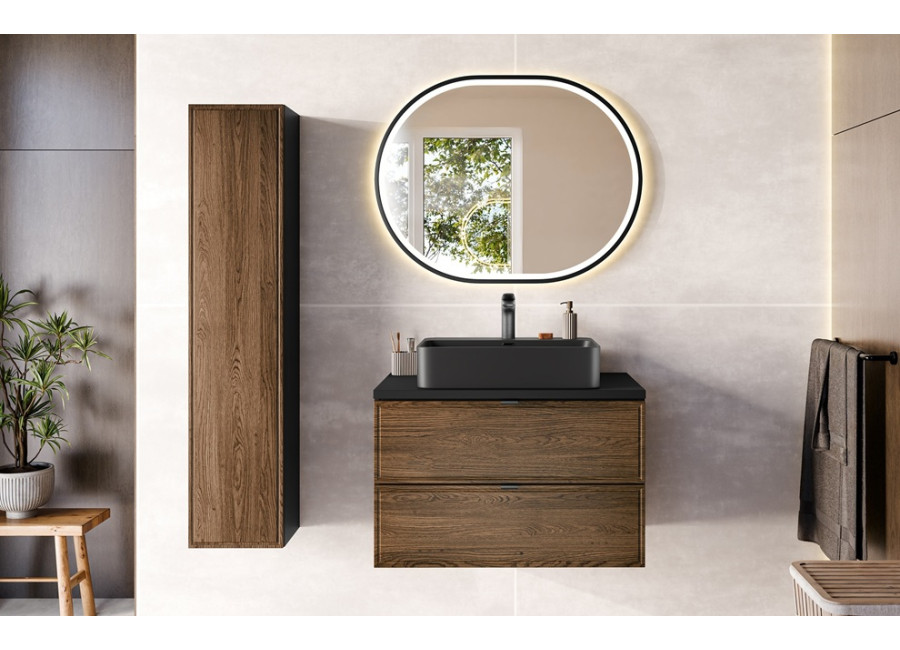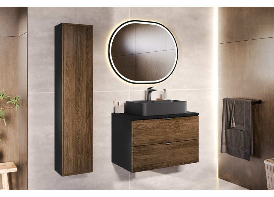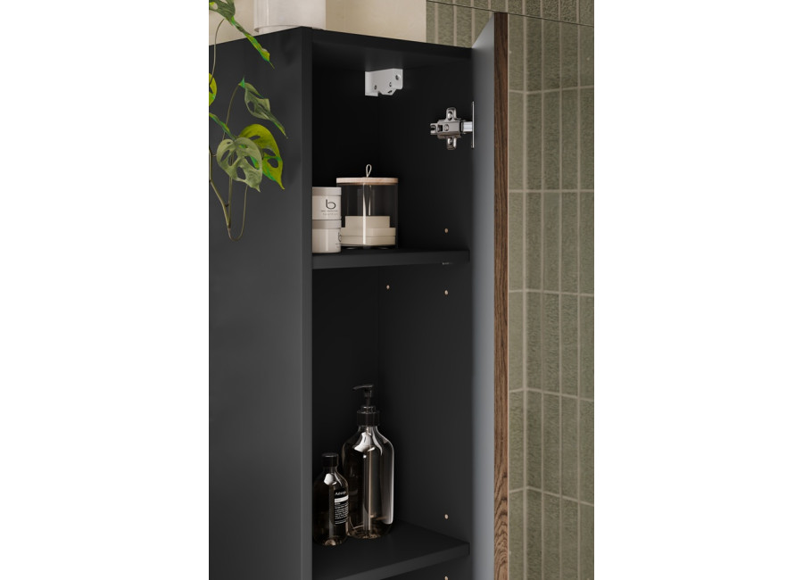 Vysoká policová skrinka do kúpeľne TALIA Casella 80-30-1D predstavuje praktický a jednoduchý dizajn v kategórii kúpeľňového nábytku. Ide o policovú skrinku v šírke 30 cm, ktorá je vyrobená z kvalitnej laminovanej drevotriesky s ABS hranami a dvierka z MDF materiálu. Jednoduchý moderný vzor na dvierkach vo farebnej kombinácii dub casella a čierna matná dokonale zapadne do väčšiny interiérov. Vďaka bezúchytkovému otváraniu funkciou Push to Open a tichému dovieraniu dvierok je používanie maximálne komfortné. Vysoká policová skrinka TALIA Casella spĺňa požiadavky na kvalitné skrinky, odolné voči vlhkosti, ktoré sa jednoducho udržiavajú a dlhodobo zachovávajú svoj vzhľad.