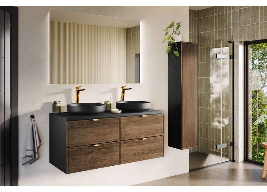 Kúpeľňová skrinka je súčasťou kolekcie TALIA, ktorá obsahuje skrinky pod umývadlo, vysoké skrinky aj závesné skrinky do kúpeľne. Nechýbajú ani umývadla, sifóny a rôzne doplnky.