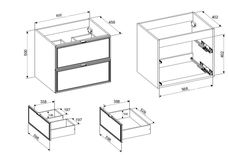 - skrinka je vyrobená z laminovanej drevotriesky s ABS hranami a MDF materiálu odolnému voči vlhkosti,