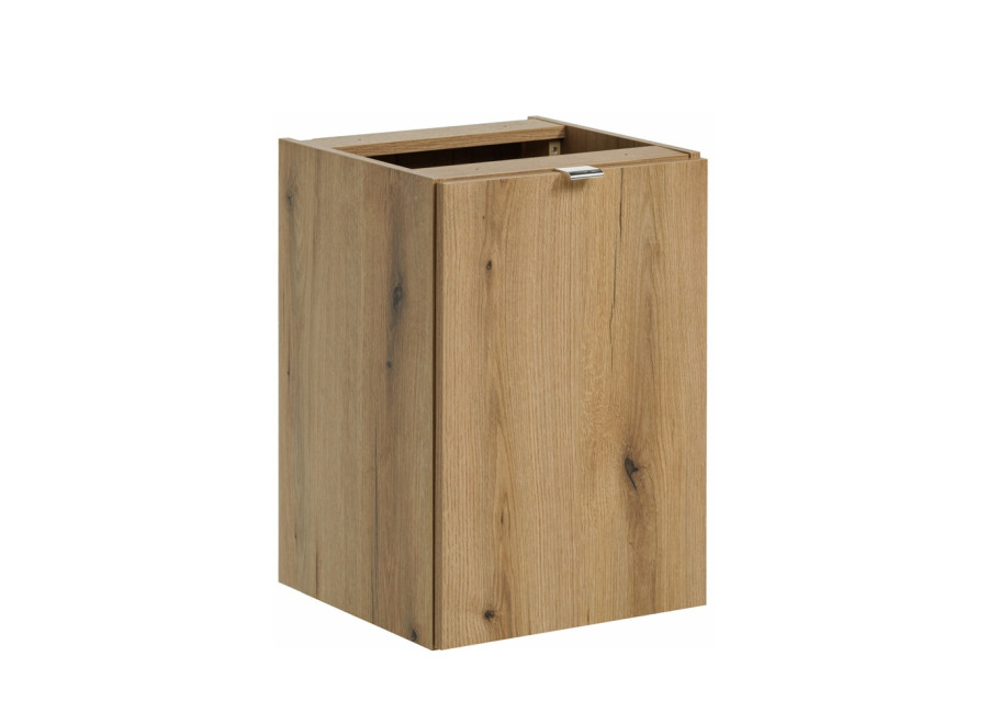 Skrinka je vyrobená z kvalitnej laminovanej drevotriesky (hrúbka 16 mm), ktorá je osvedčeným materiálom pre kúpeľňové prostredie. Hrany sú ošetrené odolnou ABS hranou, ktorá zvyšuje ochranu proti mechanickému poškodeniu a prenikaniu vlhkosti. Dizajn sa nesie v duchu čistých línií – charakterizujú ho minimalistické hladké predné plochy. Veľmi žiadané farebné prevedenie dub evoke vnáša do kúpeľne prírodný a hrejivý vzhľad. Celkový dojem dotvárajú hliníkové úchytky s chrómovým leskom. Skrinka je určená na zavesenie na stenu, čo je moderné riešenie, ktoré uľahčuje udržiavanie čistoty podlahy a opticky odľahčuje priestor. Pre zvýšenie komfortu pri každodennom používaní skrinka má spomaľovač (systém tichého dovierania), ktorý zabezpečí plynulé a tiché zatváranie dvierok.