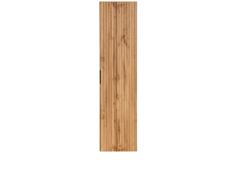 Vysoká policová skrinka do kúpeľne ADEL dub 80-01-B-1D predstavuje praktické a funkčné riešenie pre všetkých, ktorí hľadajú kvalitný kúpeľňový nábytok. Policová kúpeľňová skrinka v šírke 35 cm je vyrobená z kvalitnej laminovanej drevotriesky s ABS hranami, ktoré zabezpečujú vysokú odolnosť voči vlhkosti. Dvierka skrinky sú vyrobené z MDF materiálu a zdobí ich zvislé drážkovanie, čo podčiarkuje moderný vzhľad vo farebnom prevedení dub wotan.