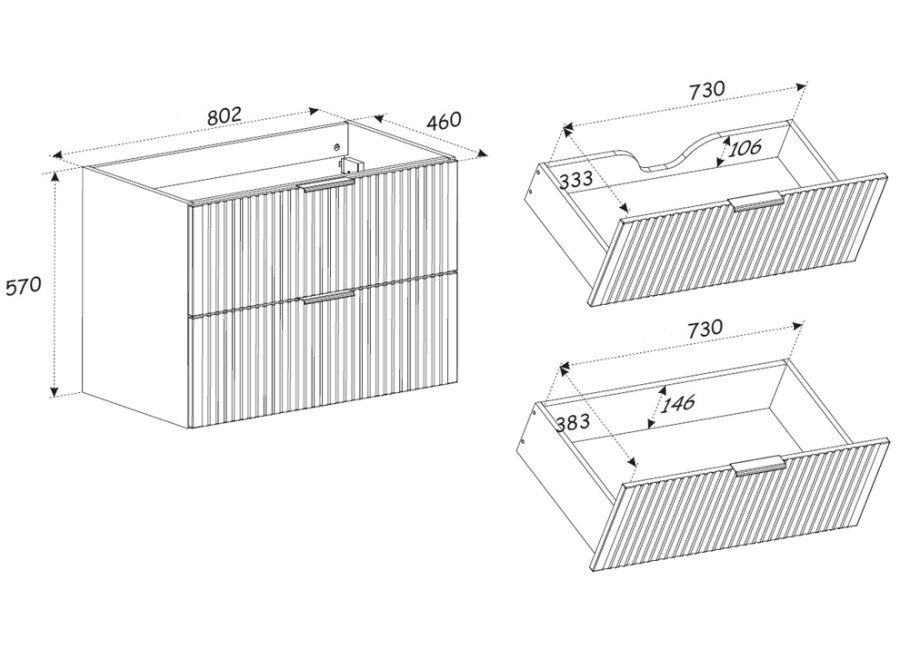 Súčasťou balenia sú tri farebné sady úchytiek – lesklá zlatá, lesklá chrómová a matná čierna, vďaka ktorým si môžete skrinku prispôsobiť podľa vašich predstáv. Úchytky si môžete zladiť s farbou batérie alebo inými doplnkami vo Vašej kúpeľni. Ku skrinke pod umývadlo odporúčame zakúpiť plochý sifón, ktorý umožní naplno využiť priestor v hornej zásuvke a maximalizovať tak úložný priestor, ktorý tieto kúpeľňové skrinky poskytujú.