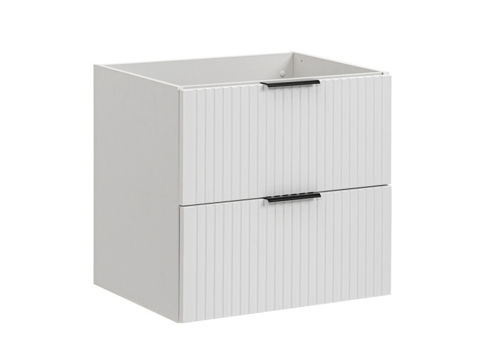 Biela skrinka pod umývadlo ADEL white 82-60-2S je praktickým riešením pre každú kúpeľňu. Tento kúpeľňový nábytok v šírke 60 cm poskytuje úložný priestor tam, kde je najviac potrebný - priamo pod umývadlom. Ide o závesnú skrinku, ktorá je vhodná na montáž na stenu a vďaka tomu zabezpečuje ľahké čistenie podlahy aj moderný, vzdušný dizajn kúpeľne. Skrinka je vyrobená z kvalitnej laminovanej drevotriesky s ABS hranami, čo jej dodáva pevnú konštrukciu a odolnosť voči vlhkosti. Čelá zásuviek sú z MDF materiálu a ich povrch má bielu matnú úpravu, ktorá sa jednoducho kombinuje s ďalšími prvkami kúpeľne. Špecifikom tejto série sú čielka zásuviek so zvislým ozdobným drážkovaním, vďaka čomu skrinka zapadne ako do moderných, tak aj do klasických kúpeľňových priestorov.