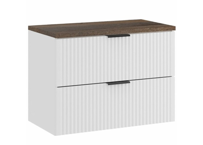 Predstavujeme Vám závesnú skrinku pod umývadlo s doskou ADEL White 82-80-2S-DV, navrhnutú tak, aby optimálne využila priestor vo vašej kúpeľni a zároveň jej dodala moderný vzhľad. Skrinka pod umývadlo v šírke 80 cm má korpus vyrobený z kvalitnej laminovanej drevotriesky s ABS hranami. Čielka zásuviek sú zhotovené z MDF materiálu. Jedinečným dizajnovým prvkom sú práve čielka zásuviek, ktoré majú zvislé ozdobné drážkovanie, dodávajúce skrinke elegantný charakter a textúru. Celkové farebné prevedenie biela matná/dub vintage pôsobí sviežo, elegantne a ľahko sa kombinuje s rôznymi štýlmi kúpeľňového zariadenia. Práve biele kúpeľňové skrinky sú dlhodobo obľúbenou voľbou pre svoju univerzálnosť.