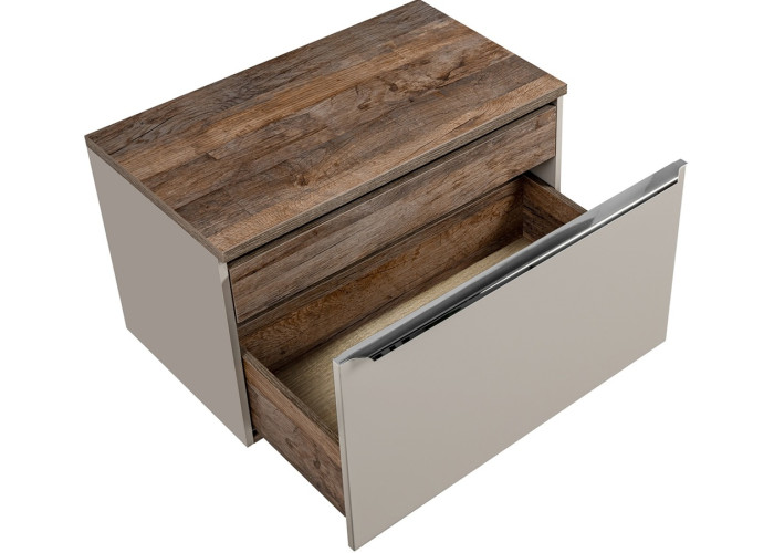 Skrinka pod umývadlo s doskou SANTA FE Taupe v šírke 80 cm predstavuje ideálnu kombináciu moderného dizajnu, funkčnosti a kvalitného spracovania, ktorý zvýrazní štýl každej kúpeľne. Kúpeľňová skrinka je vyrobená z laminovanej drevotriesky s ABS hranami, vďaka čomu je odolná voči vlhkosti. Farebné prevedenie dub vintage + taupe pôsobí elegantne a jednoducho sa kombinuje s ostatnými prvkami interiéru. Detaily, ako chrómová úchytka, zdôrazňujú moderný charakter skrinky.