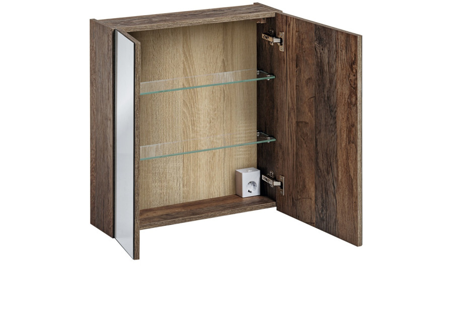 Skrinka so zrkadlom nad umývadlo SANTA FE dub 84-60-2D je kvalitný kúpeľňový nábytok, ktorý dokonale zapadne do kúpeľového prostredia. Skrinka v šírke 60 cm je vyrobená z kvalitnej laminovanej drevotriesky s ABS hranami. Farebné prevedenie dub vintage dodá vašej kúpeľni útulnú a elegantnú atmosféru. Je určená na zavesenie na stenu, čo umožňuje jednoduchú inštaláciu a maximálnu flexibilitu pri usporiadaní kúpeľňového priestoru. Dvierka sú vybavené funkciou tichého dovierania.