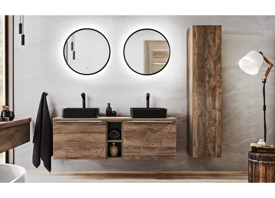 Skrinka so zrkadlom nad umývadlo SANTA FE dub 84-80-2D je kvalitný kúpeľňový nábytok, ktorý dokonale zapadne do kúpeľového prostredia. Skrinka v šírke 80 cm je vyrobená z kvalitnej laminovanej drevotriesky s ABS hranami. Farebné prevedenie dub vintage dodá vašej kúpeľni útulnú a elegantnú atmosféru. Je určená na zavesenie na stenu, čo umožňuje jednoduchú inštaláciu a maximálnu flexibilitu pri usporiadaní kúpeľňového priestoru. Dvierka sú vybavené funkciou tichého dovierania.