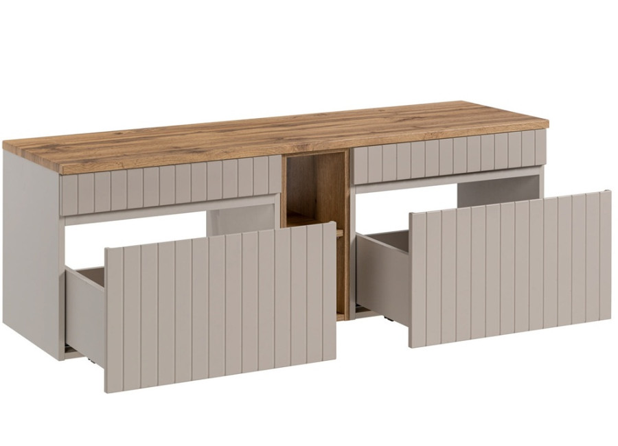 Skrinka pod umývadlo ICONIC Cashmere 82-140-DE predstavuje kombináciu praktickosti a štýlového dizajnu. Kúpeľňová skrinka v šírke 140 cm je zostavená zo štyroch častí: