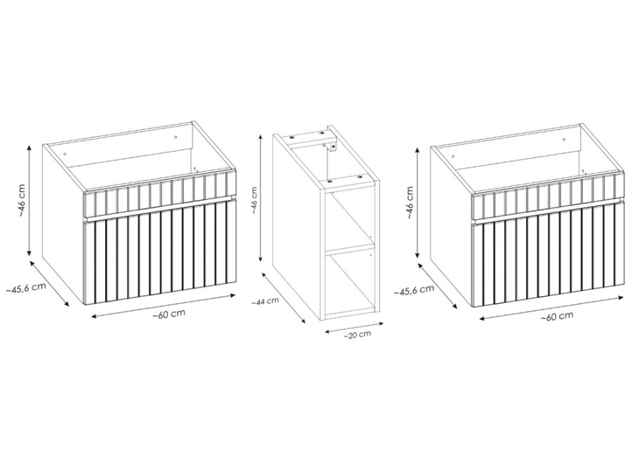 Poskytuje tak veľkorysý úložný priestor pre všetky kúpeľňové potreby, ako sú kozmetika či čistiace prostriedky. Vyrobená je z kvalitnej laminovanej drevotriesky s ABS hranami, čo zaručuje vysokú odolnosť voči vlhkosti a mechanickému opotrebovaniu. Dvierka sú z MDF materiálu, ozdobené zvislými drážkami, ktoré prispievajú k jej štýlovému vzhľadu. Zafrézovaná úchytka perfektne zapadá do minimalistického dizajnu a zaručuje jednoduché otváranie.