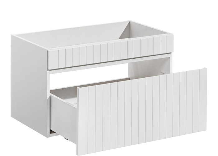 Skrinka je navrhnutá na zavesenie na stenu, umožňuje tak ľahšie čistenie podlahy. Tento kúpeľňový nábytok je vybavený zásuvkou s funkciou tichého dovierania, čo prispieva k pohodlnému a tichému užívaniu. Poskytuje dostatok úložného priestoru pre každodenné potreby, čím pomáha udržiavať vašu kúpeľňu zorganizovanú a štýlovú. Je ideálna na uloženie kozmetiky, čistiacich potrieb či uterákov, takže všetko potrebné je vždy po ruke. Pre maximálne využitie priestoru Vám odporúčame zakúpiť plochý sifón. Vrchná doska a umývadlo nie sú zahrnuté v cene skrinky, preto máte voľnosť výberu medzi zápustným umývadlom 80x46 cm alebo vrchnou doskou s vrchným umývadlom.