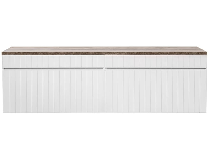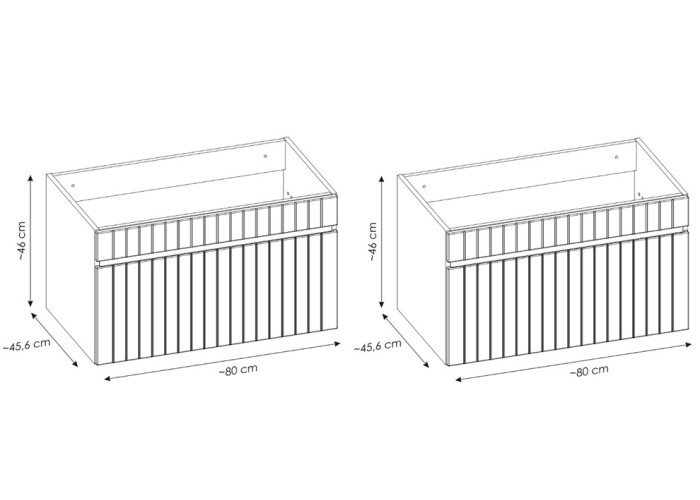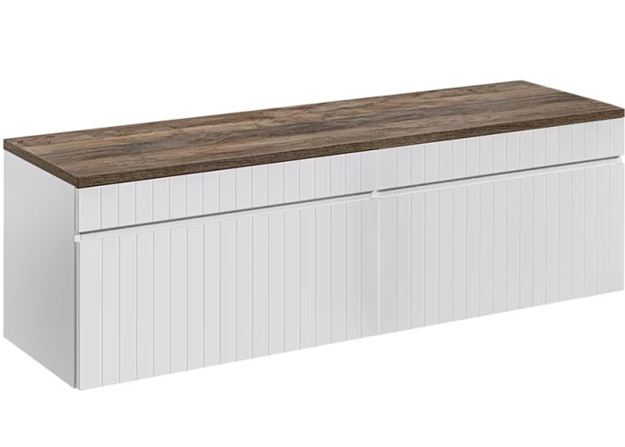 Skrinka pod umývadlo s doskou ICONIC white 82-160-DV je riešením pre všetkých, ktorí hľadajú štýlový a funkčný kúpeľňový nábytok. Biela skrinka do kúpeľne so šírkou 160 cm, je zložená z dvoch samostatných 80 cm skriniek a 160 cm vrchnej dosky. Je vyrobená z kvalitnej laminovanej drevotriesky s ABS hranami, ktoré zaisťujú odolnosť voči vlhkosti a dlhú životnosť. MDF predné plochy sú zdobené zvislými drážkami, ktoré pridávajú nábytku eleganciu a zaujímavý dizajnový prvok. Zafrézovaná úchytka na zásuvkách nenarúša čisté línie.