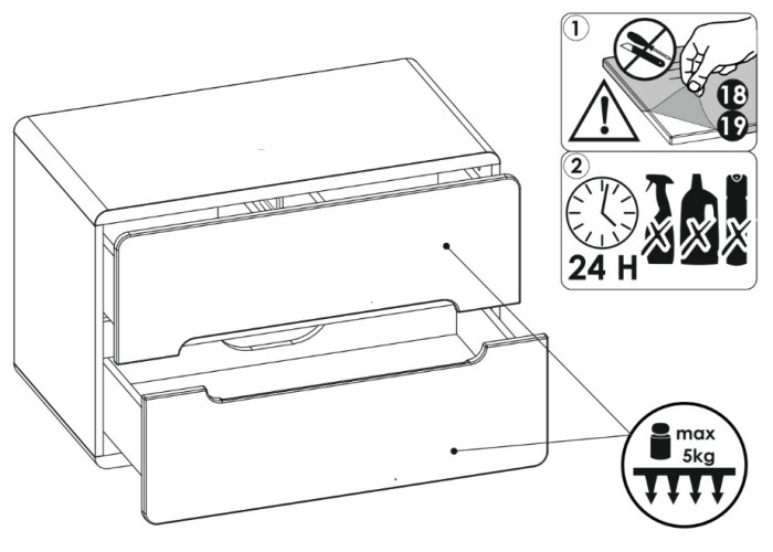- skrinka je vyrobená z laminovanej drevotriesky s ABS hranami a MDF materiálu,