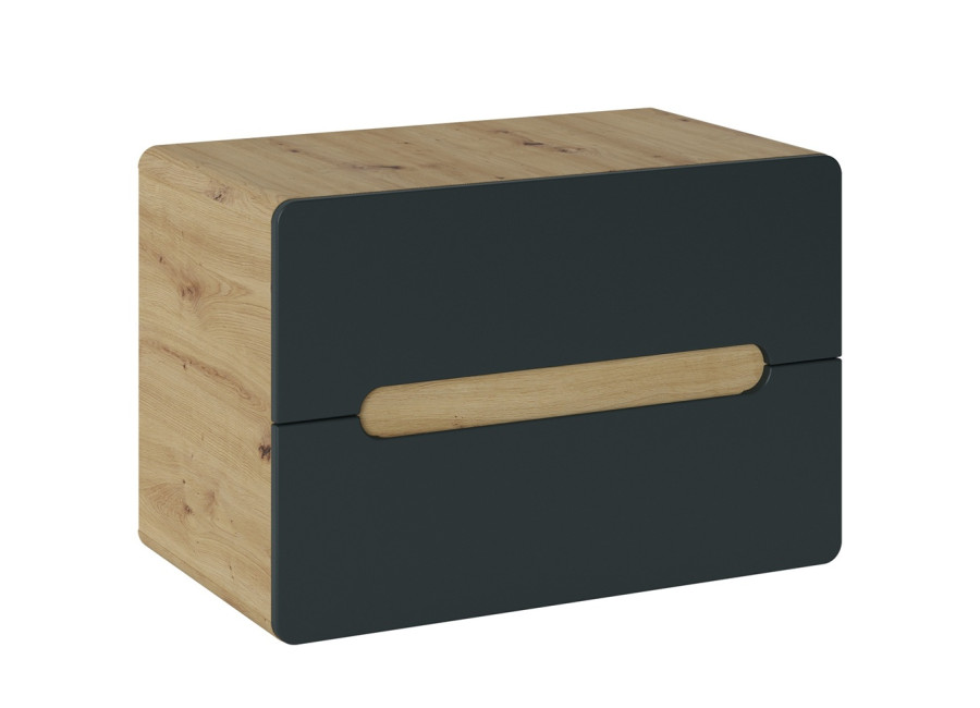 Je vyrobená z kvalitnej laminovanej drevotriesky s ABS hranami a s čielkami zásuviek z MDF materiálu, ktoré sú odolné voči vlhkosti. Zaoblené hrany zdôrazňujú estetiku moderného designu. Zafrézovaná úchytka umožňuje jednoduché otváranie zásuvky, pričom zachováva čisté línie a minimalizmus. Farebná kombinácia dub craft zlatý + čierna matná dodáva kúpeľni elegantný nádych. Skrinka je určená na zavesenie na stenu, čím sa uvoľňuje priestor pod ňou a uľahčuje sa čistenie podlahy. Zásuvka je vybavená funkciou tichého dovierania, umožňuje plynulé a nehlučné zatváranie a prispieva k pocitu komfortu v kúpeľni.