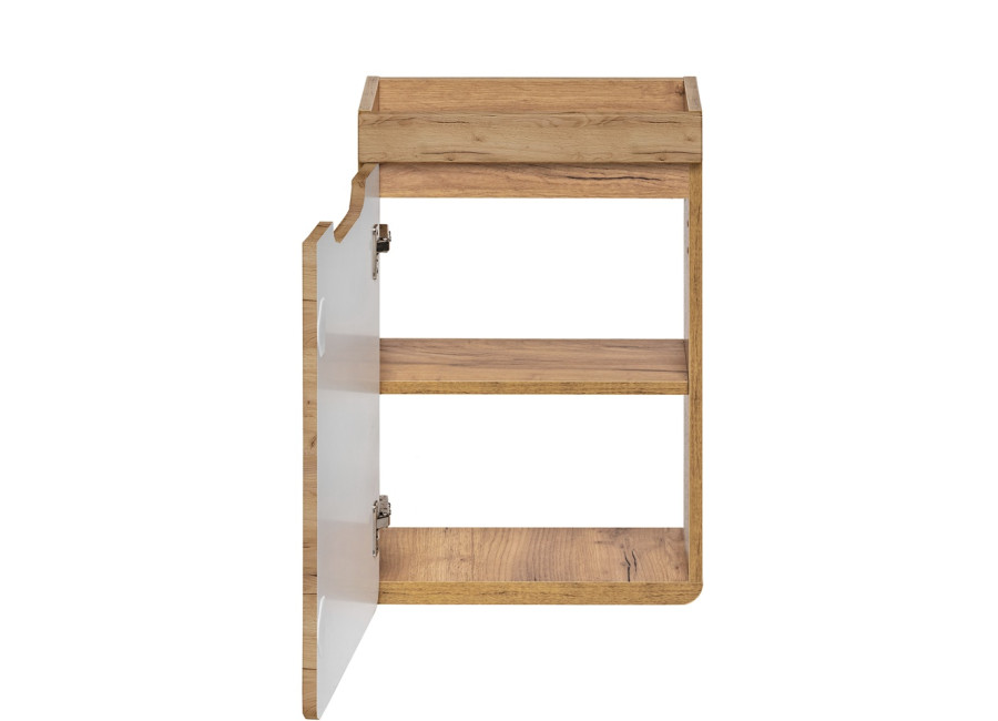 Predstavujeme Vám skrinku s umývadlom ARUBA, ktorá je praktickým doplnkom do malých kúpeľňových priestorov. Skrinka s umývadlom v šírke 40 cm je vyrobená z kvalitnej laminovanej drevotriesky s ABS hranami. Dvierka sú z MDF materiálu, ktorý je upravený tak, aby bol odolný voči vlhkosti. Farebné prevedenie dub craft zlatý dodáva skrinke teplý a prírodný vzhľad, zatiaľ čo čierne hladké dvierka prispievajú k jej elegantnému dizajnu. Skrinka je určená na zavesenie na stenu, uľahčuje tak údržbu podlahy a prispieva k vzdušnejšiemu vzhľadu kúpeľne.