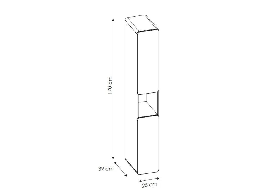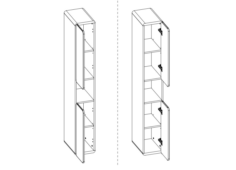 Vysoká policová skrinka do kúpeľne ARUBA white 805 so šírkou 25 cm, ponúka dostatok úložného priestoru aj do menších kúpeľní. Je vyrobená z kvalitnej laminovanej drevotriesky s ABS hranami, čo zabezpečuje jej odolnosť voči vlhkosti, zatiaľ čo dvierka z MDF materiálu s hladkým bielym leskom prinášajú moderný vzhľad.