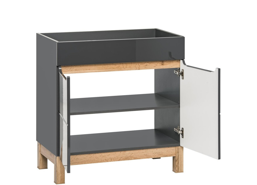 Skrinka pod umývadlo BALI grafit 820 je ideálnym riešením pre tých, ktorí hľadajú praktickosť a štýl v rámci kúpeľňového nábytku. Kúpeľňová skrinka v šírke 60 cm je navrhnutá tak, aby poskytovala dostatok úložného priestoru pod umývadlom a zároveň ladila s moderným interiérom.