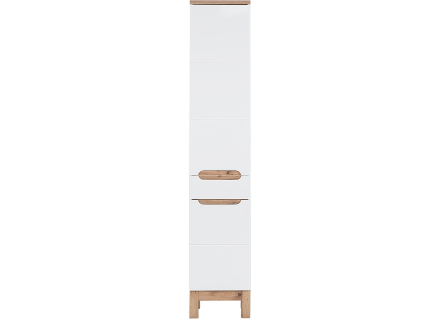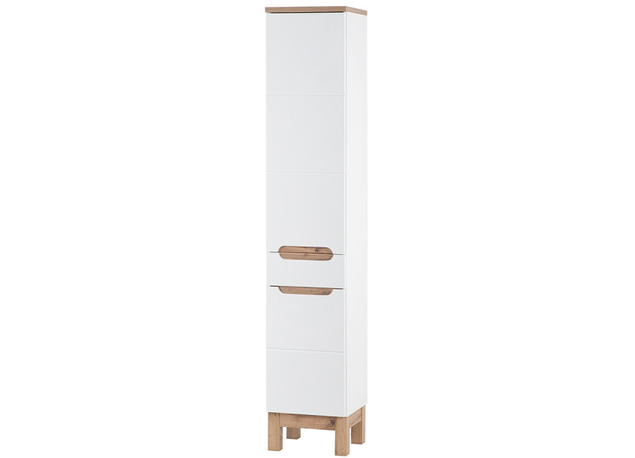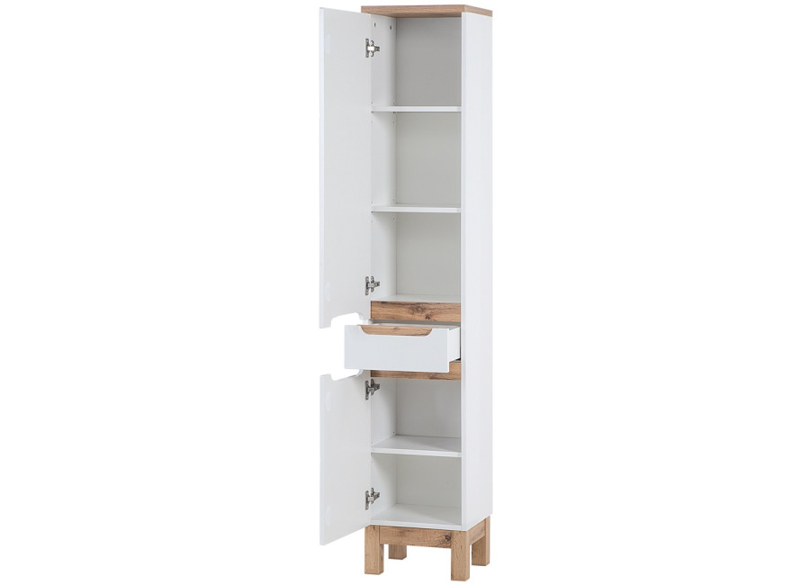 Vysoká policová skrinka do kúpeľne BALI White 800 je elegantným a funkčným doplnkom pre moderné kúpeľne. Kúpeľňová skrinka so šírkou 35 cm je ideálna na optimalizáciu úložného priestoru v menších aj väčších kúpeľniach. Je súčasťou kolekcie kúpeľňového nábytku BALI, ktorá zahŕňa aj skrinky pod umývadlo a závesné skrinky.