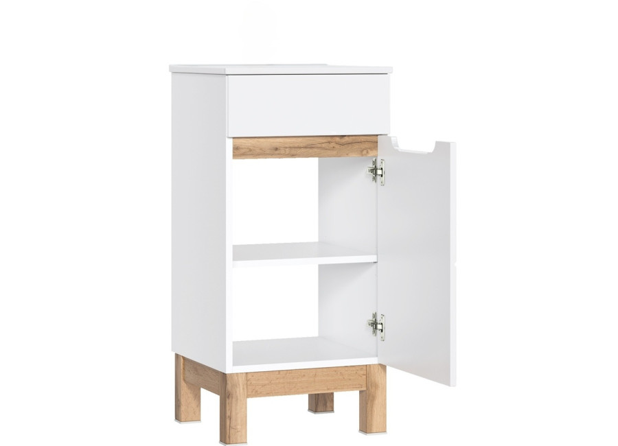 Skrinka pod umývadlo BALI White 823 je ideálnym kúskom kúpeľňového nábytku pre všetkých, ktorí hľadajú riešenie do menších kúpeľní. Kúpeľňová skrinka so šírkou 40 cm je navrhnutá tak, aby efektívne využívala priestor a poskytovala dostatok úložného priestoru pre vaše každodenné potreby.
