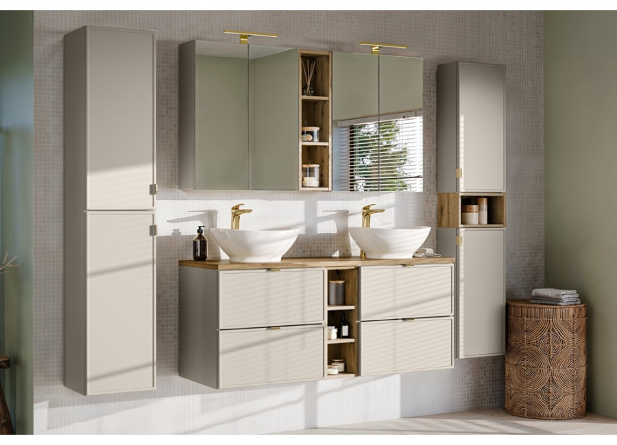 V rámci kolekcie BELLA Cashmere nájdete aj ďalší kúpeľňový nábytok, vrátane skriniek pod umývadlo či iných závesných skriniek, ktoré umožňujú vytvoriť ucelený a harmonický priestor.
