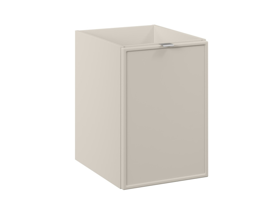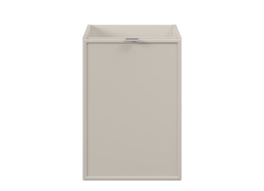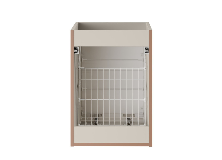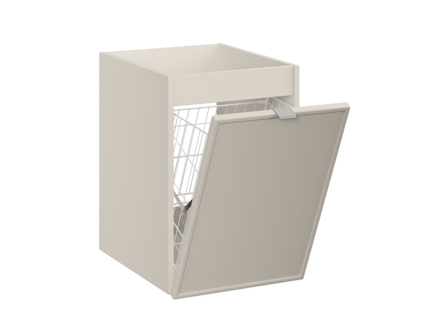 Skrinka s košom na prádlo BELLA Cashmere 81-40-1DK je praktický a vkusný doplnok kúpeľňového nábytku, je ideálna na uskladnenie špinavej bielizne. Kúpeľňová skrinka so šírkou 40 cm integruje koš na prádlo, čo umožňuje efektívne využitie priestoru v kúpeľni. Vyrobená je z kvalitnej laminovanej drevotriesky s ABS hranami, ktoré zvyšujú jej odolnosť voči vlhkosti v kúpeľni. Dvierka sú z MDF materiálu a sú elegantne ozdobené frézovaným rámom, čo pridáva na estetickom vzhľade.