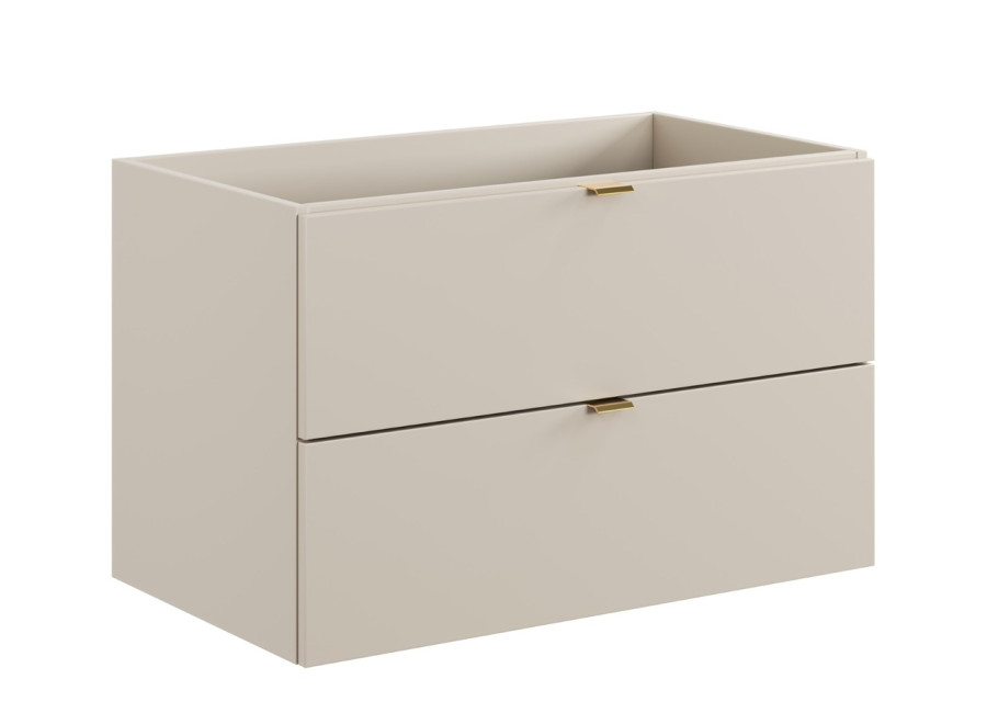 Súčasťou balenia sú 3 farebné sady úchytiek: zlatá lesklá, chrómová lesklá a čierna matná, ktoré môžete ľahko zladiť s kúpeľňovými batériami alebo inými doplnkami. Farebné prevedenie kašmír vnesie do vašej kúpeľne jemný a útulný tón. Ku skrinke odporúčame zakúpiť plochý sifón pre optimálne využitie priestoru. Vrchná doska a umývadlo nie sú zahrnuté v cene, čo vám umožňuje zvoliť si variant podľa vašich predstáv: zápustné umývadlo s rozmermi 80x46 cm alebo vrchnú dosku s vrchným umývadlom.
