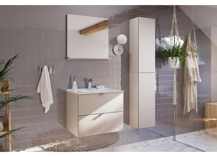 Kolekcia DALIA Cashmere obsahuje okrem skriniek pod umývadlo aj vysoké a závesné skrinky do kúpeľne, čím ponúka kompletné riešenie pre zariadenie kúpeľní.