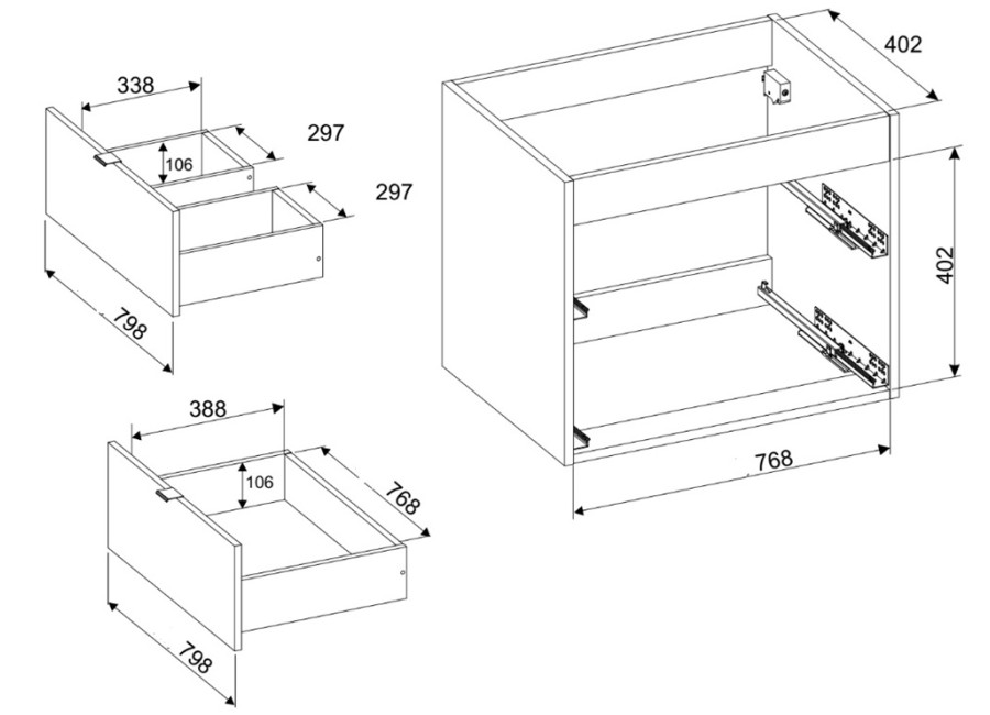 - skrinka je vyrobená z laminovanej drevotriesky s ABS hranami,