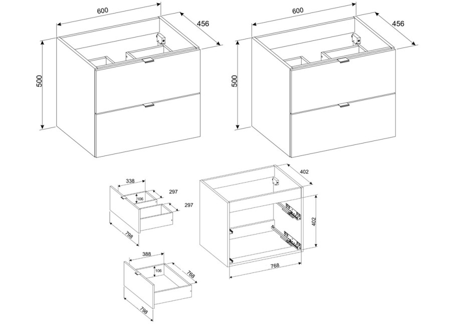 - dvoch skriniek pod umývadlo so šírkou 60 cm,