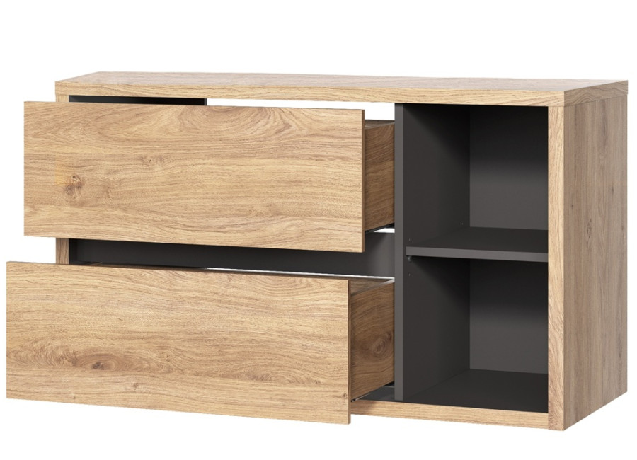 Dve zásuvky vybavené funkciou tichého zatvárania sú praktickým riešením pre uskladnenie rôznych kúpeľňových potrieb. Vnútorné časti sú v grafitovej farbe. Zákazník môže do skrinky uložiť uteráky, toaletné potreby, čistiace prostriedky alebo kozmetiku. Pre optimálne využitie priestoru pod umývadlom odporúčame ku skrinke zakúpiť plochý sifón.